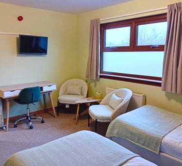A comfortable accessible twin room perfect for couples, friends or solo travelers.
