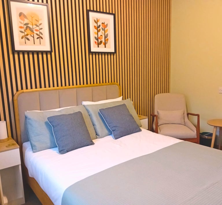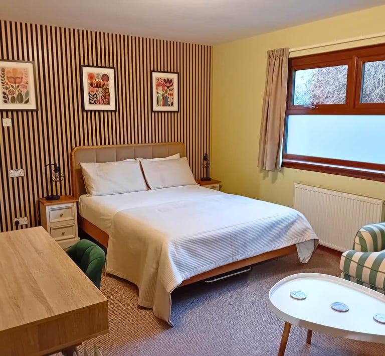 Double room with ensuite, decorated in calming neutral tones to enable you to relax and wind down.